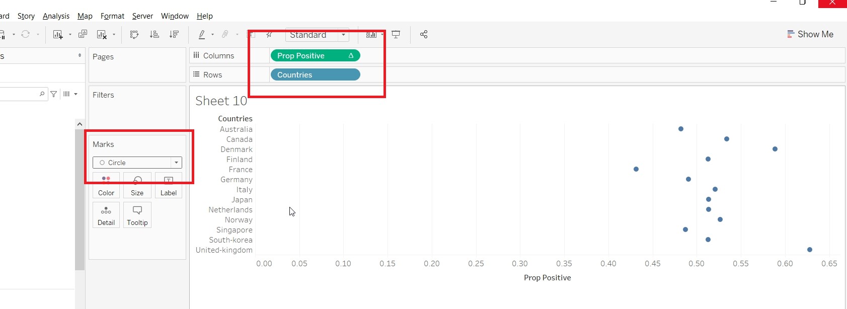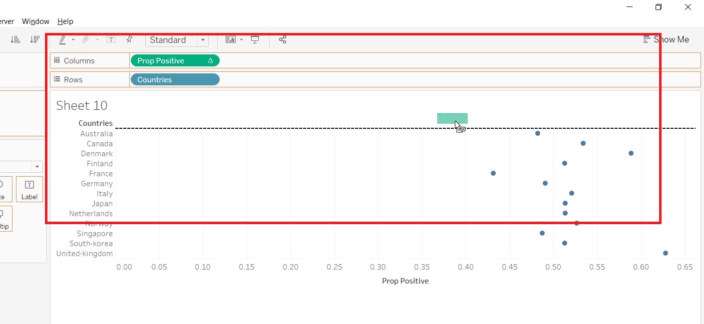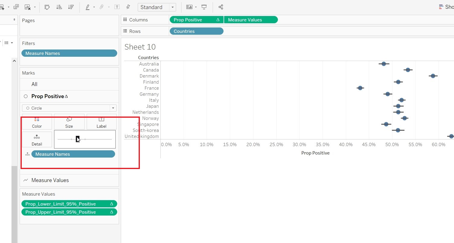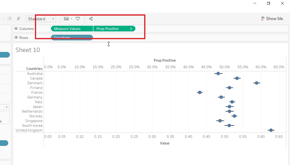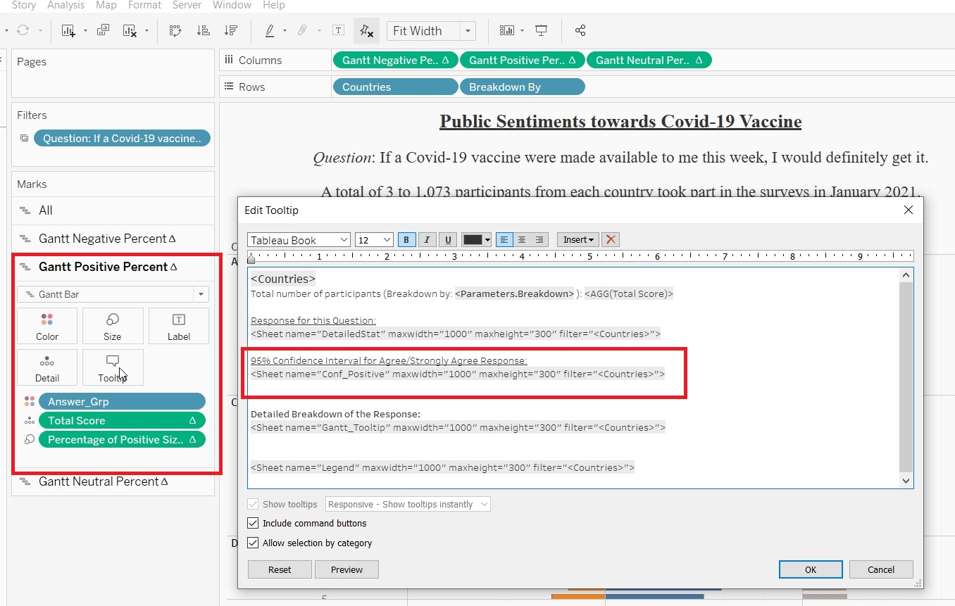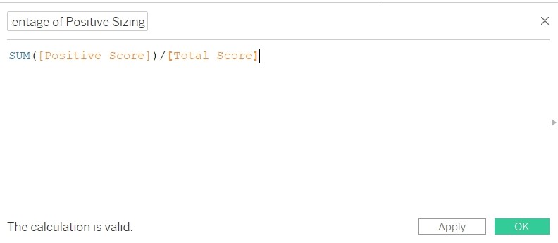 9. Count the size/percentage of the Positive score by creating Calculated Field“Percentage of Positive Sizing”.
