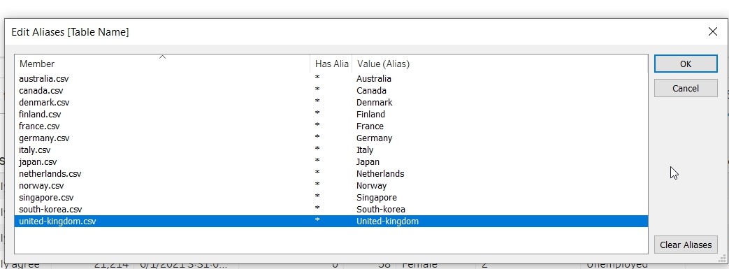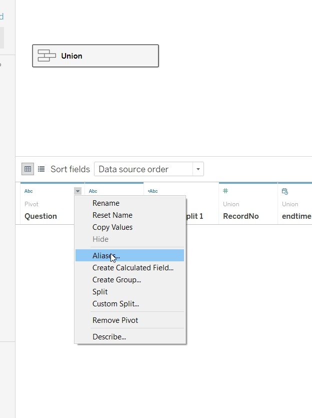 14. Change the aliases of “Table Name” to remove the .csv portion.