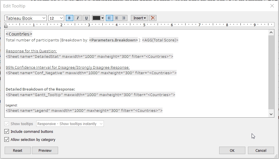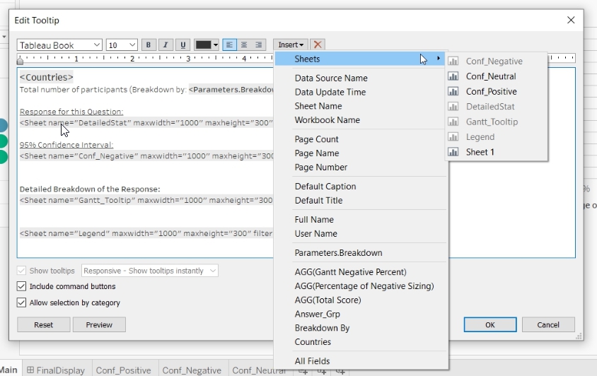 Create a sheet to be included as part of Tooltip. This sheet will be used to detailed out the percentage for each of the rating.