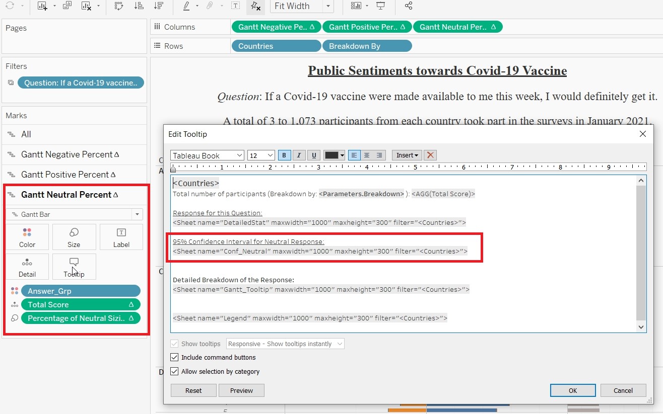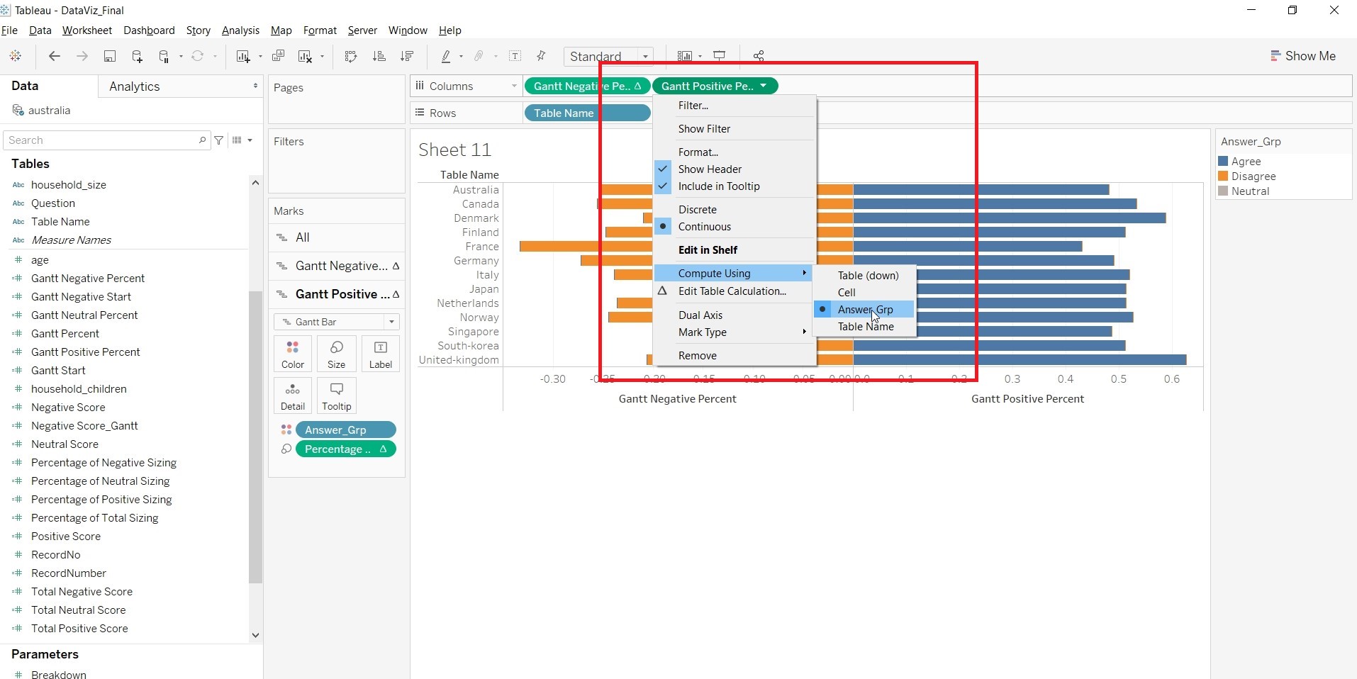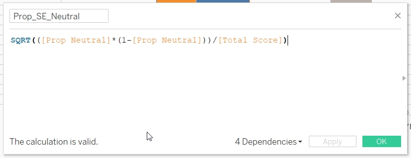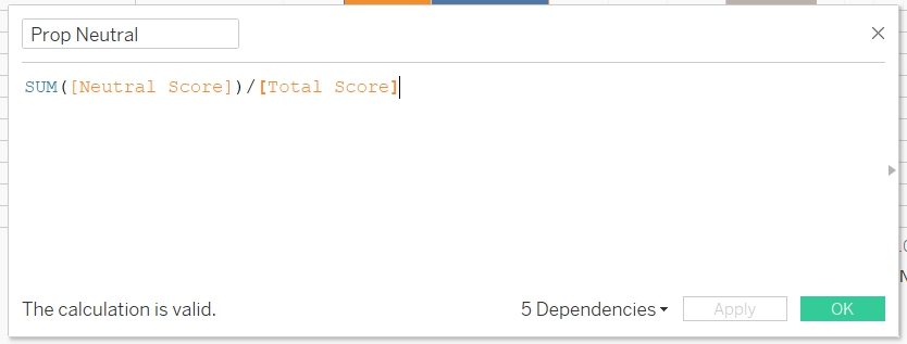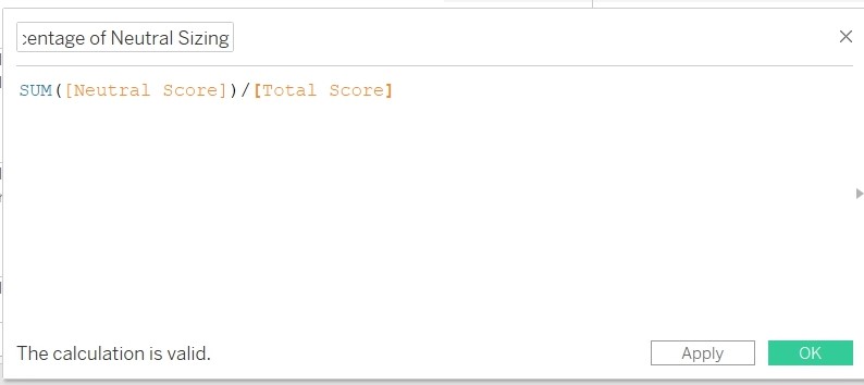 10. Count the size/percentage of the Neutral score by creating Calculated Field Create Calculated Field “Percentage of Neutral Sizing”.