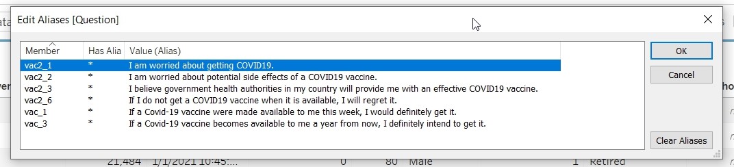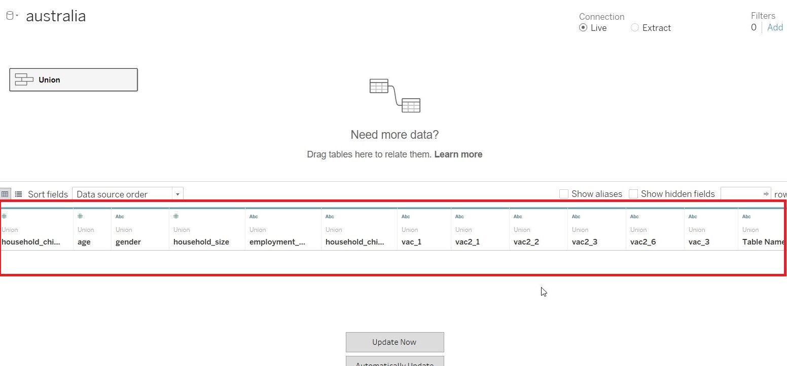 1. Hide all the parameters and retain only the following a) RecordNo b) endtime c) household_children d) household_size e) gender f) age g) employment_status h) vac-1 i) vac2_1 j) vac2_2 k) vac2_3 l) vac2_6 and m) vac3. n) Table Name