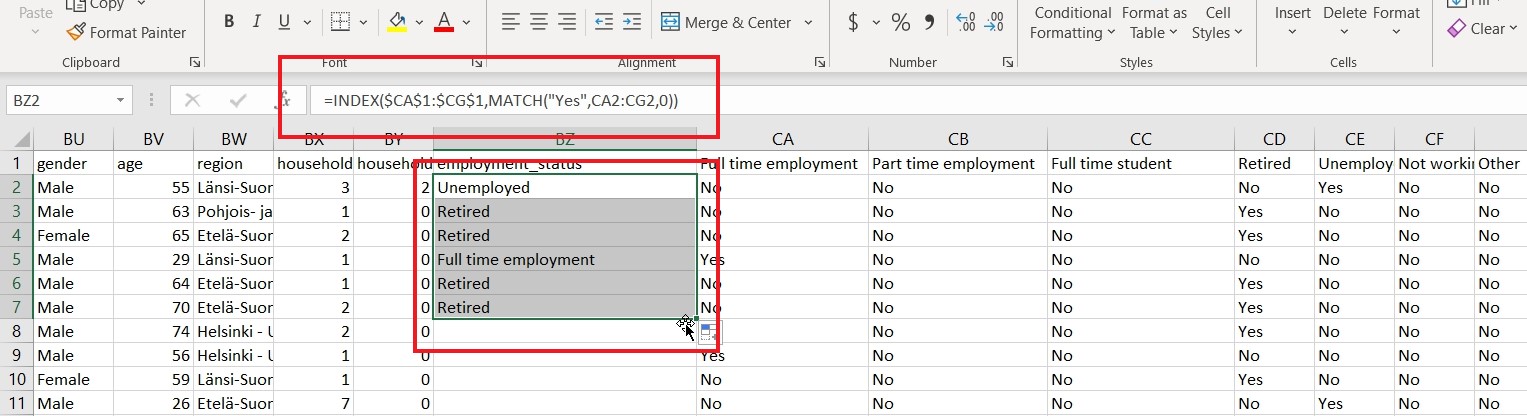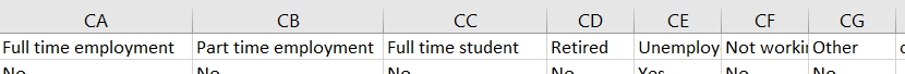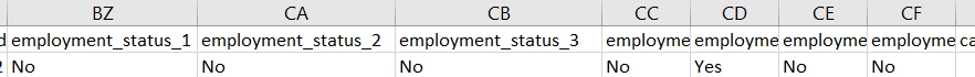 2. To align to the rest of the dataset, need to create the field “employment_status” and change the header to reflect the employment status (“Fulltime Employment”,“Not Working” etc)