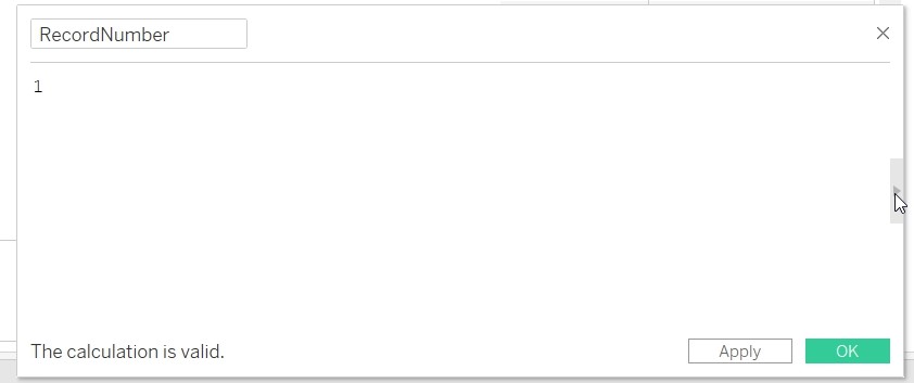 1. To count the number of record for subsequent formula, Create Calculated Field “RecordNumber”