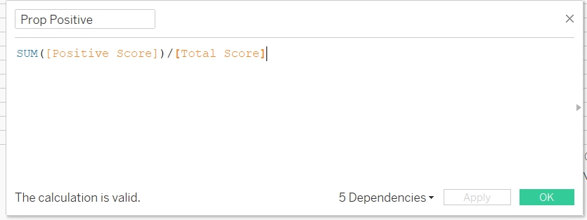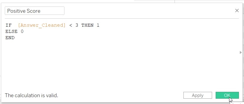 3. To set record with Positive value to 1 by creating a Calculated Field “Positive Score”.