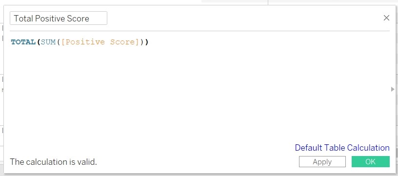 6.Count the number of Positive score by creating the Calculated Field “Total Positive Score”.