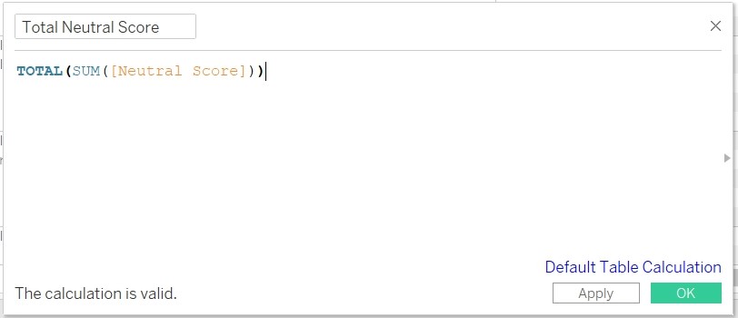 7. Count the number of Neutral score by creating the Calculated Field “Total Neutral Score”.