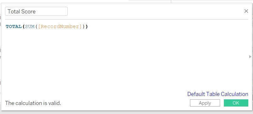8. Count the total number of records by create the Calculated Field “Total Score”.