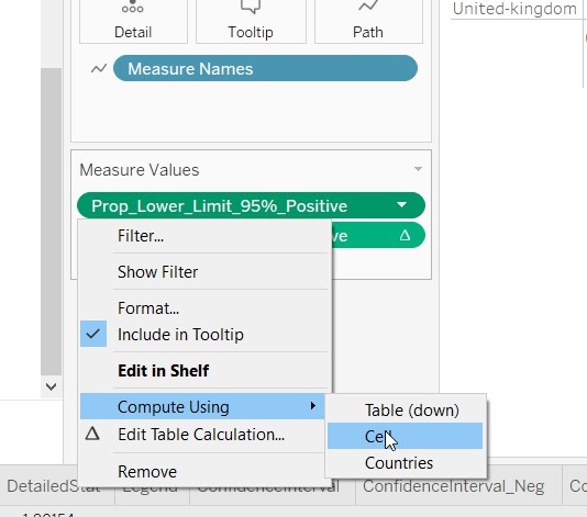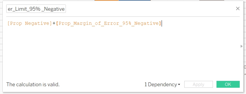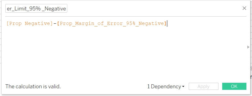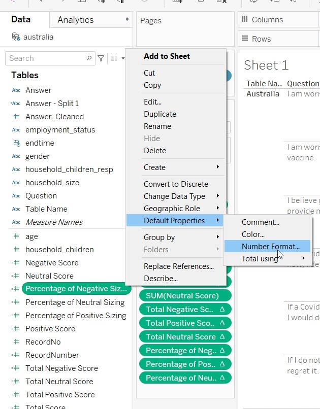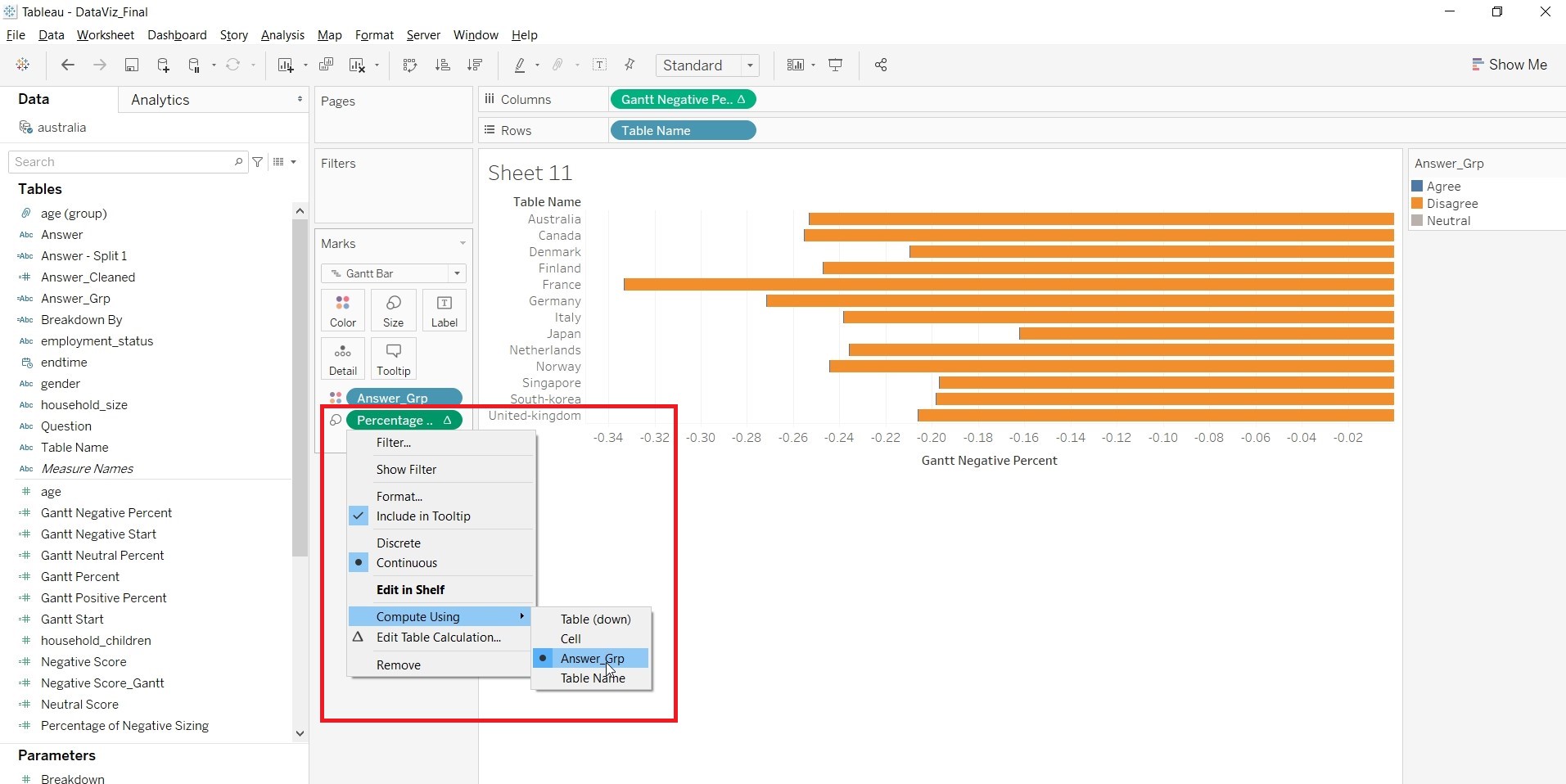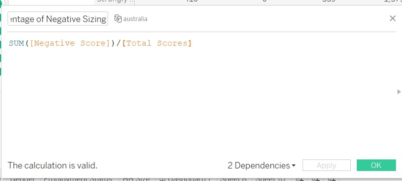 8. Count the size/percentage of the negative score by creating Calculated Field “Percentage of Negative Sizing”.