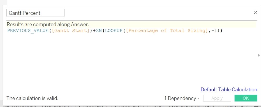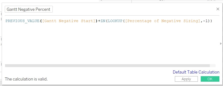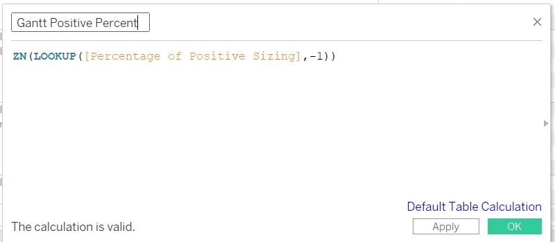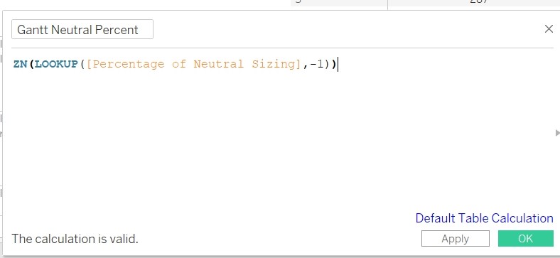 13. Create Calculated Field”Gantt Neutral Percent“.