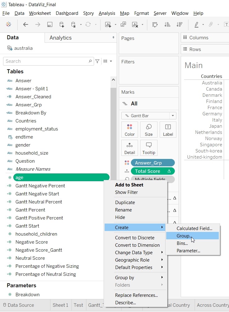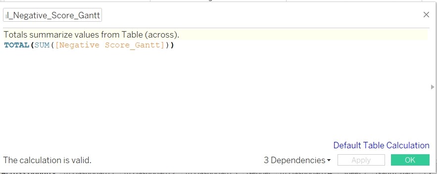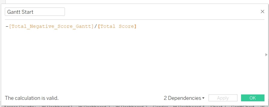 18. Create Calculated Field “Total_Negative_Score_Gantt”