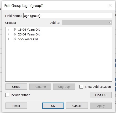 21. Age is currently a range of value. Need to bin the value into 3 different bin. Go to Age and create Group.