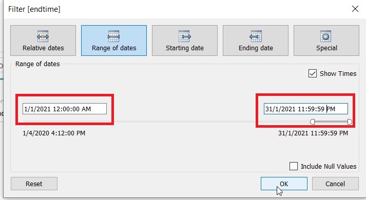 5. Edit the range of date to Jan 2021, to use only Jan 2021 data.