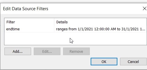 4. Add a filter for “endtime” and set it to Jan 2021.